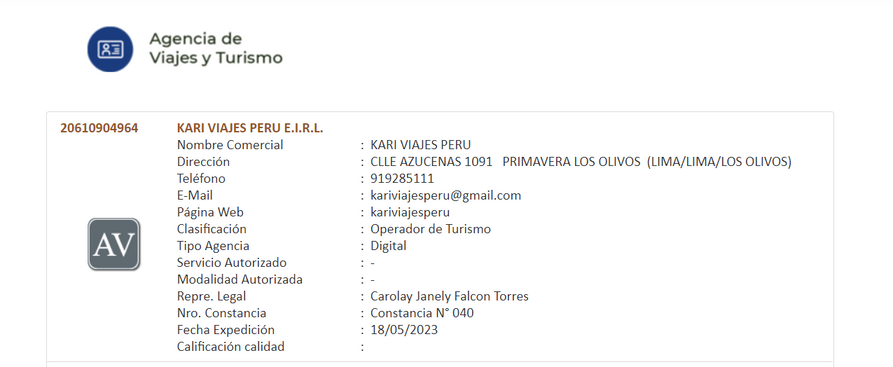 registrados en MINCETUR y tenemos oficina para atención presencial. (previa cita)